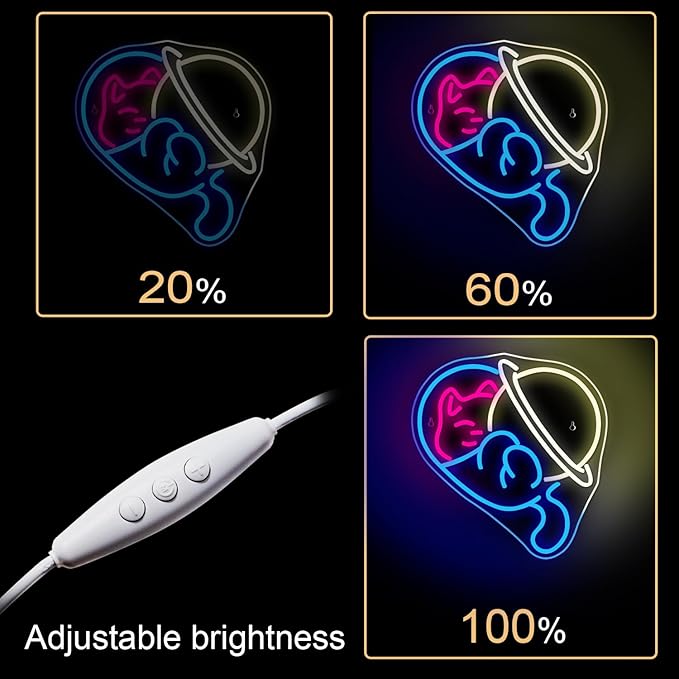 - 【Cat Neon Sign】: This anime neon sign features a very unique astronaut cat design pattern, using blue, pink, white and other neon tubes. It is very suitable as a wall decoration for bedrooms, living rooms, bars, game rooms, gatherings and other places.