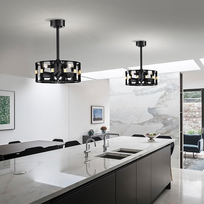 Lutz 16 Inch Matte Black and Gold Modern Fandelier