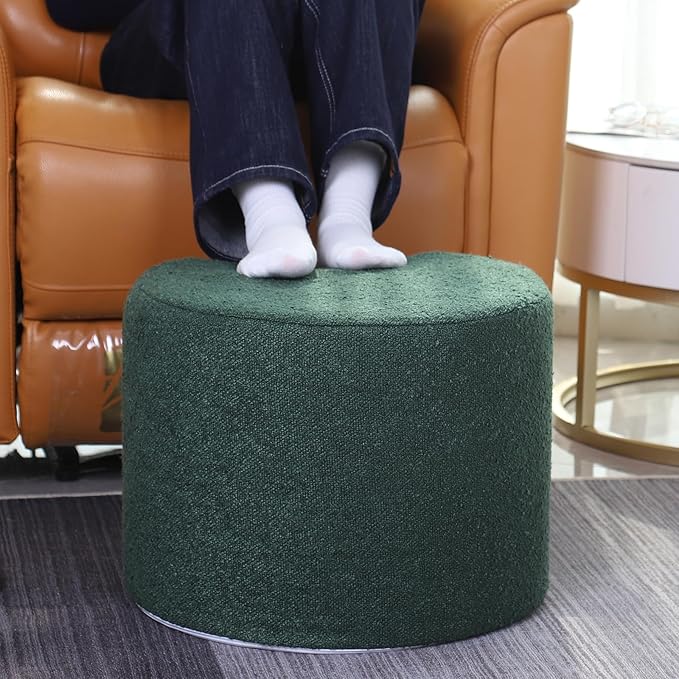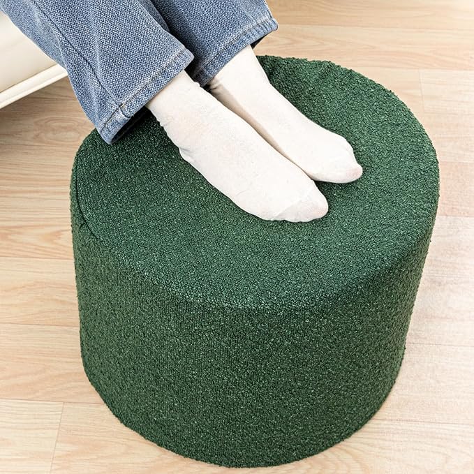 Asuprui Supportive Boucle Pouf Ottoman and Foot Rest Elevate Your Living Room Decor with Lightweight Pouf Filler Modern Foam Stuffed Poof Perfect to Rest Your Feet Moss Green