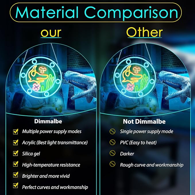 - 【High-quality】:Safety materials can be purchased with confidence. Our OCEAN WORLD neon lamp has a soft silicone rubber strip, transparent and solid acrylic background board and USB port. Ensure low energy consumption, power consumption, and it is worth every penny you spend. There is no need to worry about the risk of breakage or leakage of harmful substances. Every product will be inspected before leaving the factory to ensure that the product is delivered to you intact.