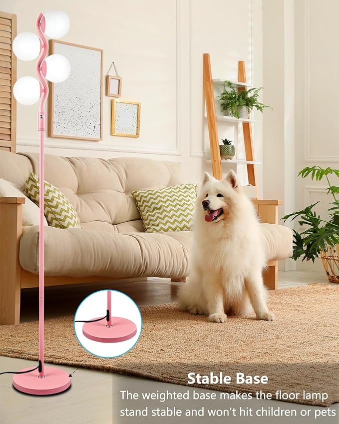 60IN Dimmable (Brightness Adjustable) Pink Pole Floor Lamp, Modern Standing Lamps with 4 Globe Soft Warm White 3000K Bulbs, Mid Century Floor Lamp for Living Room Bedroom Home Decor