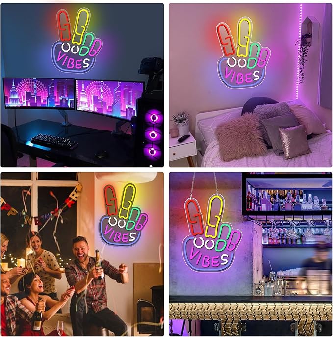 - PERSONALIZED NEON WALL DECOR: This large good vibes only neon sign is the perfect choice for parties and both indoor and outdoor decoration. The unique gesture design, combined with bright neon colors, instantly creates a lively atmosphere for any space. It can not only serve as a party backdrop but also add a unique splash of color to your space, making every gathering full of vitality and fun.