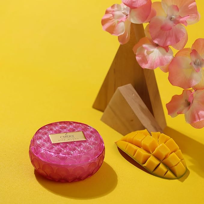 Soy Wax Glass Bowl Candle, 20-25 Hours Burn Time, Natural Essential Oils, Calming Ambiance (Bowl, Pink Mango)