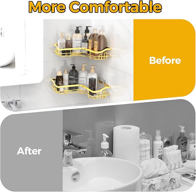 - EFFICIENT STORAGE TOOL: Corner shower shelves is widely used in kitchens as well, making it perfect for keeping your bathroom or kitchen items organized. It's an essential accessory that will enhance the functionality and aesthetics of your living spaces. Moreover, this bathroom shower organizer makes for an ideal gift for your family members.