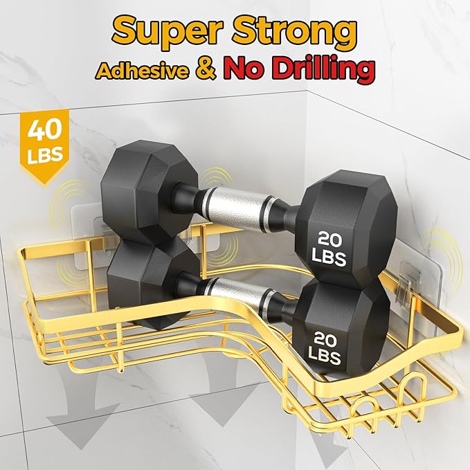 - EASY TO INSTALL WITHOUT DRILLING: Corner shower shelves are easy to install and require no drilling. Simply clean the surface, stick the adhesive to the wall, hang the shower shelves, and you're ready to enjoy their convenience.