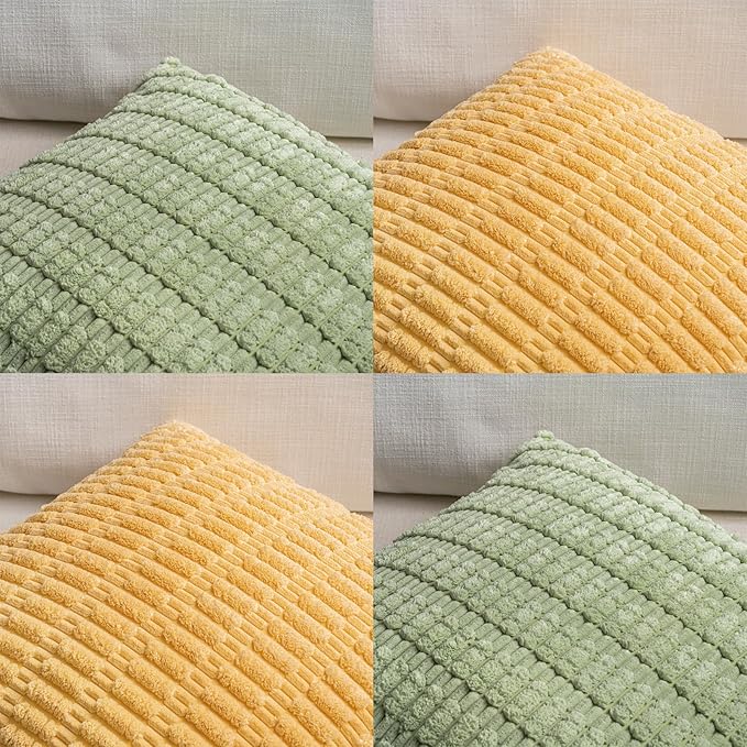 Fancy Homi Set of 4 Spring Boho Decorative Throw Pillow Covers 18x18 Inch for Couch Bed Sofa, Sage Green Yellow Room Decor, Soft Fuzzy Fluffy Cozy Corduroy Textured Cushion Case 45x45cm
