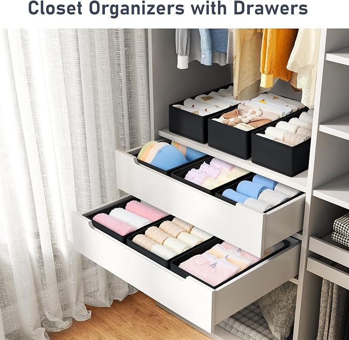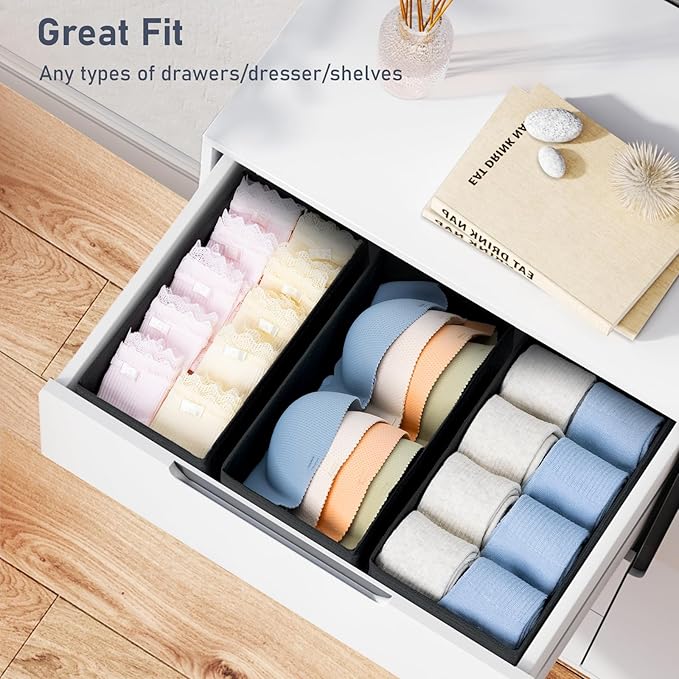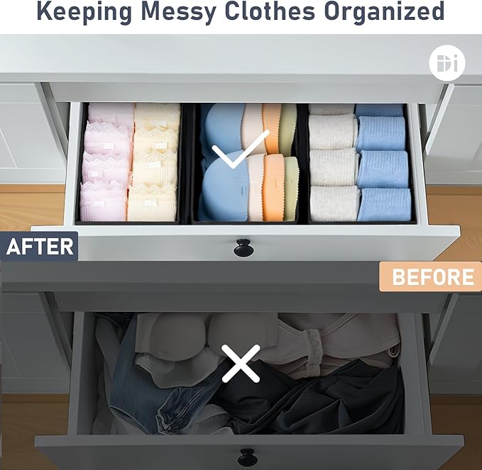 - Versatile Use Underwear Drawer Organizer: Suitable for organizing various items such as underwear, bras, socks, ties, clothes, belts, and scarves, meeting diverse household storage needs. Perfect for use inside drawers, wardrobes, or on open storage shelves