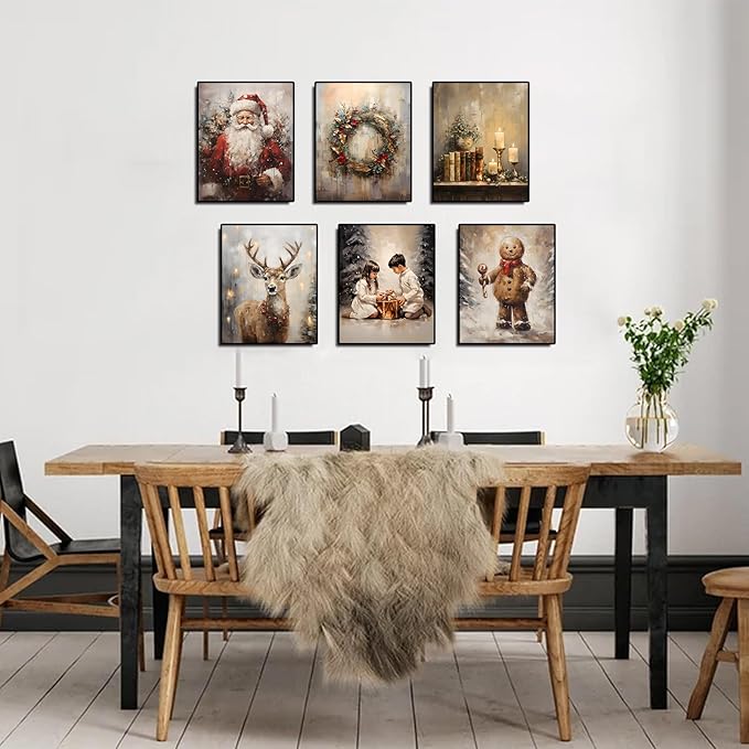 - 【Vintage Holiday Style】Rendered in a soft, painterly style, these images capture the essence of winter warmth and joy, making them perfect for adding a touch of timeless Christmas charm to any home. The christmas room decor will create a welcoming vibe into any home space, like kitchen, bathroom, dining room, hotel, restaurant etc.