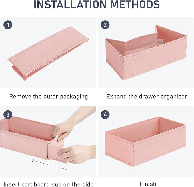 - Side Insert Design Underwear Organizer: The insert-style design eliminates the need for zippers; simply insert the cardboard directly to complete the setup. This avoids potential issues with zippers getting stuck, breaking, or malfunctioning. The side-inserted cardboard design enhances the structural support of the drawer organizer clothes, improving its durability and overall user experience