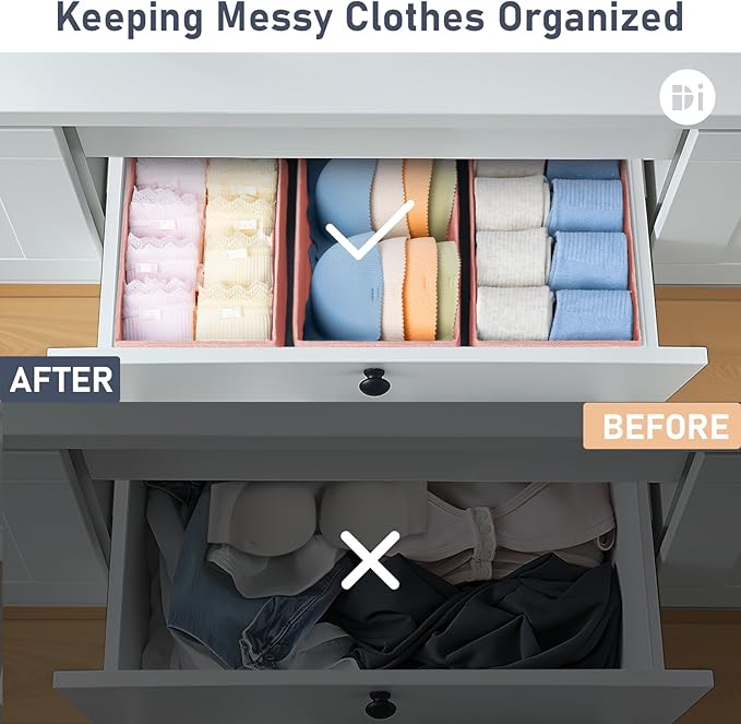 - Versatile Use Underwear Drawer Organizer: Suitable for organizing various items such as underwear, bras, socks, ties, clothes, belts, and scarves, meeting diverse household storage needs. Perfect for use inside drawers, wardrobes, or on open storage shelves