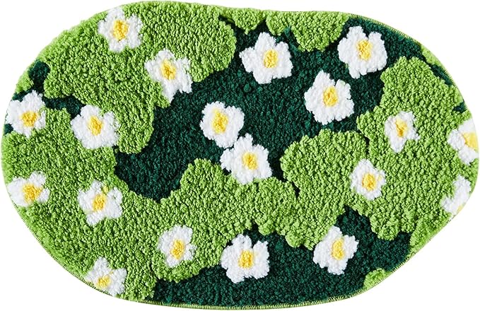 Cute Moss Rug, Green Floral Bath Mat Aesthetic Bathroom Rug 24''W x 36''L Non Slip Washable, Modern Chic Boho Funky Throw Area Rugs for Bedroom Kitchen Bathroom