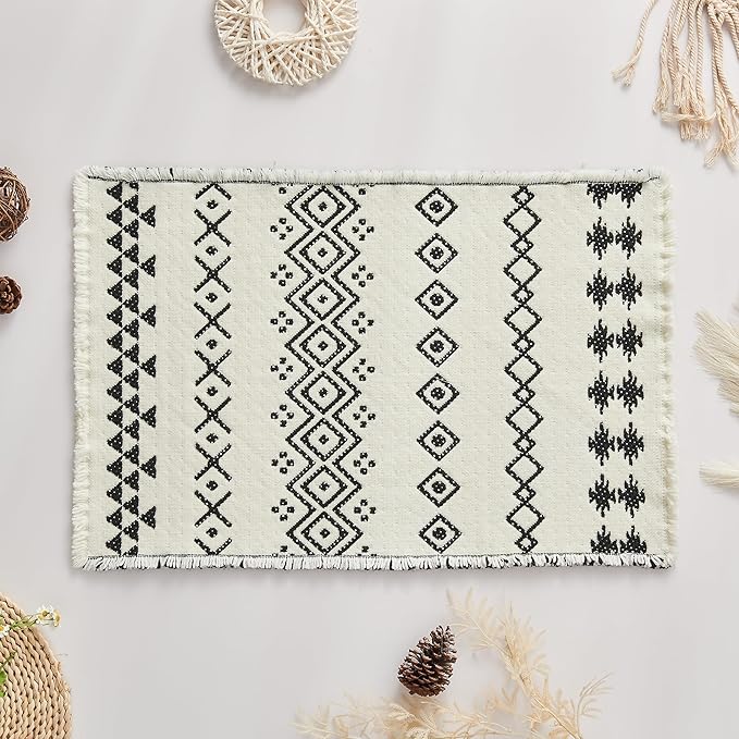 - 【Tribal Ethnic Pattern&with tassels】Our Douceur Boho bathroom mat with geometric tribal pattern is woven from a blend of polyester and acrylic yarns.This bath mat is not only lightweight, but also very comfortable. It has tassels on all four sides. It is durable and will not shed or lose its shape after machine washing.