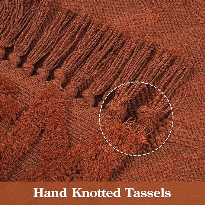 Uphome Boho Bathroom Rug 2' x 3', Washable Small Farmhouse Bedroom Rugs, Terracotta Geometric Bath Mats for Home Decor, Cotton Woven Moroccan Tufted Throw Rug for Entryway Front Door Kitchen