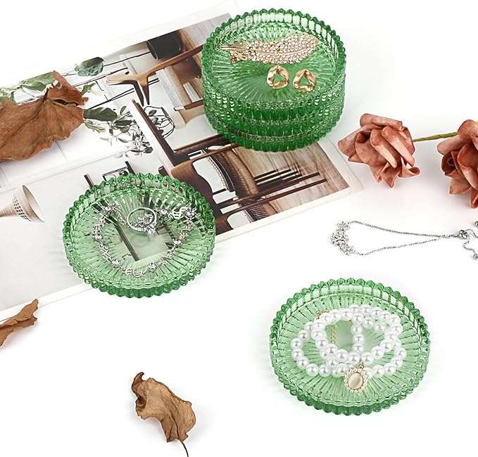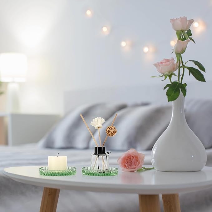 Modern Clear Coaster Set of 5- Glass Coasters for Drinks Crystal Coasters Round Cup Coasters Coffee Table Decor for Office, Kitchen, Bar, Dining Room, Living Room, Patio(Clear Green)