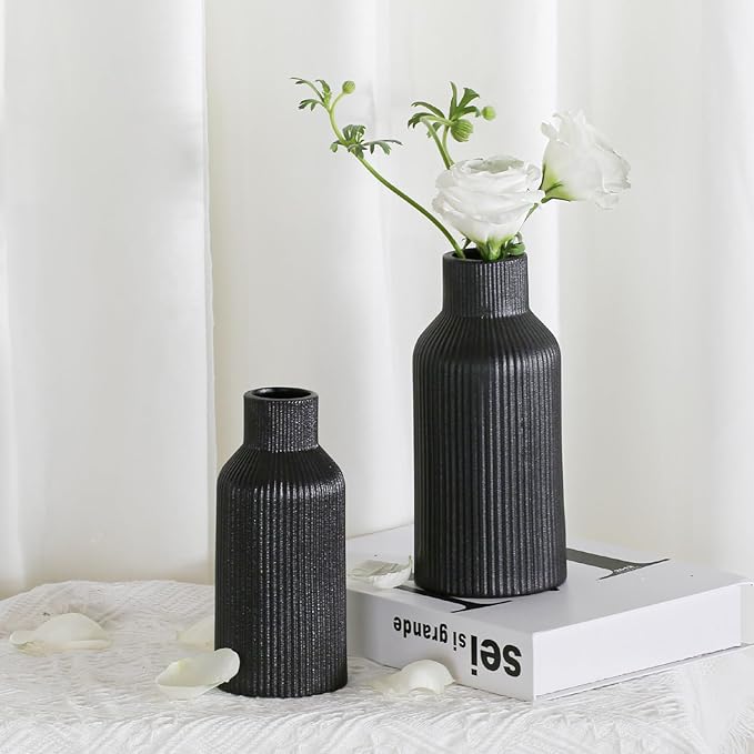 - 【APPEARANCE DESIGN】 Modern minimalist ceramic vase with vertical texture, elegant and simple, perfect for modern country farmhouse home decor. The product is fired at high temperatures for durability; perfect for living room, dining room, bathroom, tabletop, mantelpiece or work area.