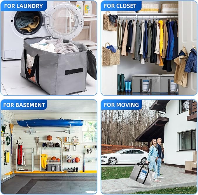 - [Durable & Heavy Duty]: Each extra large storage bags is made from PE woven material,which is waterproof and tear resistant, Different from other bags on the market, our bags use 3-layer sewing technology to deal with zipper, long carry handles, and side straps, to ensure that the bag body has sufficient load-bearing capacity and tear resistance