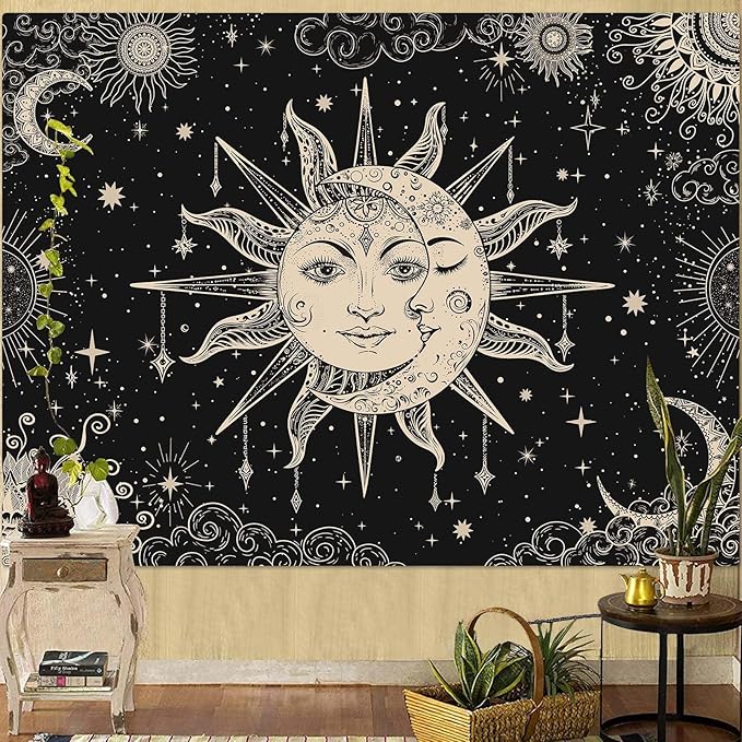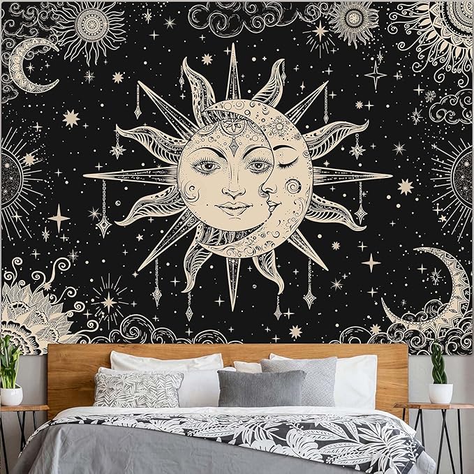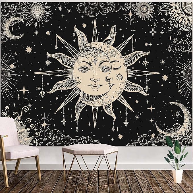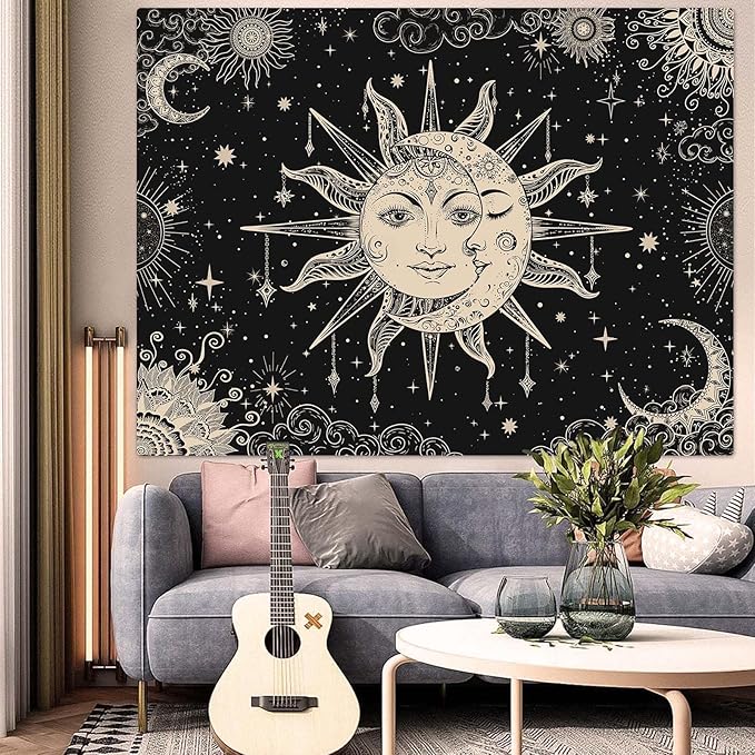 - Expressive Sun and Moon Artwork: Enhance your home decor with this captivating Sun and Moon tapestry. Its rich design brings character and warmth, making it the perfect addition to any wall or space.
