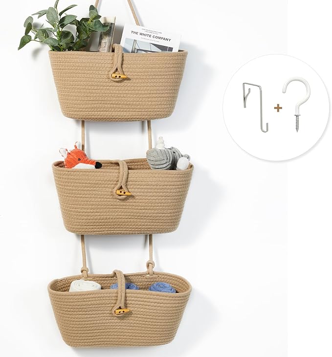 - Multi-functional Storage Solution: Our 3-tier woven hanging baskets provide you with flexible storage options suitable for any space. Whether in the kitchen, closet, or bedroom, these baskets can perfectly store small items such as keys, plants, or decor.