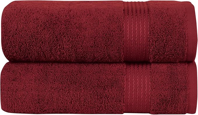 Elegant Comfort Premium Turkish Cotton 2 Pack Bath Towel Set - 27 x 54 inch, Luxurious Hotel Spa Quality 100% Turkish Cotton 2PC Bath Towel Set - Highly Absorbent - Soft Bathroom Towels, Burgundy