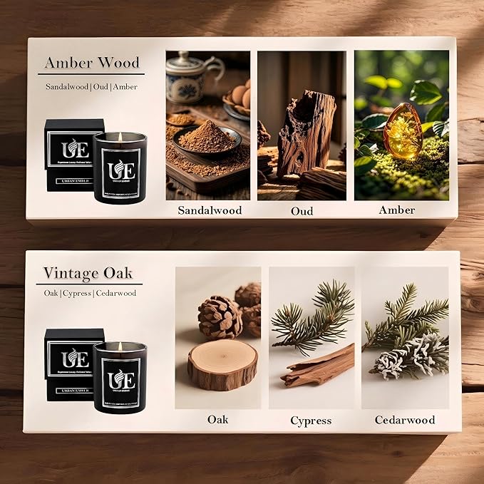 2 Pack Scented Aromatherapy Candles Gifts Set, 16 oz 110 Hour Long Lasting Candles, Amber Wood/Vintage Oak