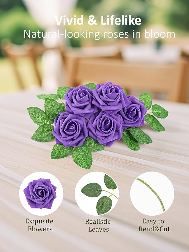 - Real Looking Roses: Realistic purple artificial roses. Our artificial roses looks pure and elegant. Enjoy the beauty of natural looking flowers without watering, add great touch to your home