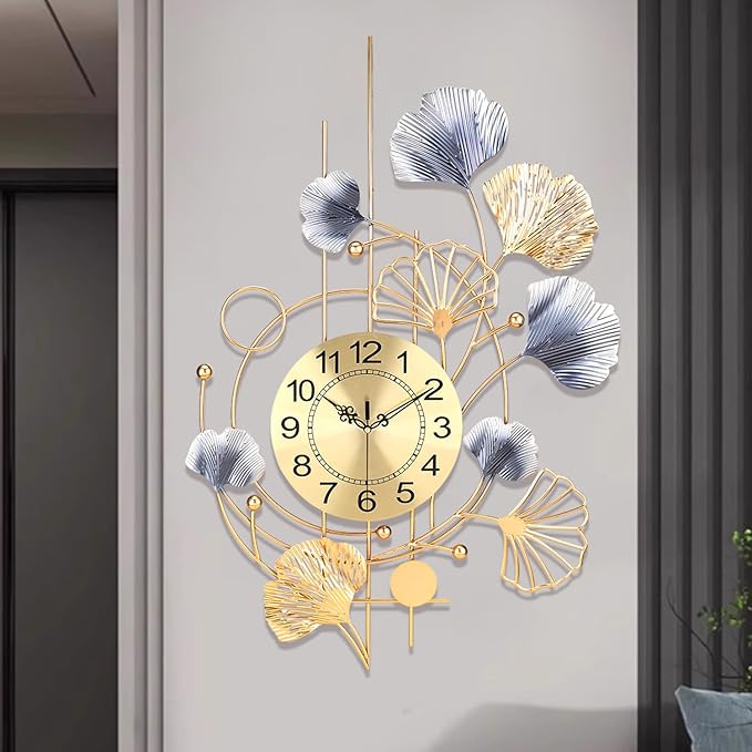 - 🕝【Metal Oversized Wall Clock】:Golden clock face designed with classic large bold black Arabic numerals-easily to read for children and the elder from all directions.