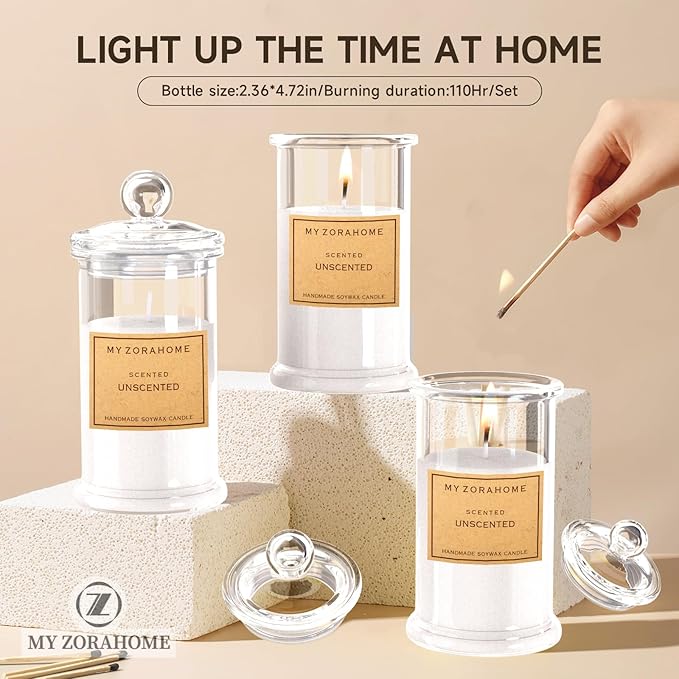 Aromatherapy Candles, Scented Candles for Home As a Holiday Candle Gift for Your Lover, Family, Elder, Friends and Colleagues (Set of 3 - Unscented)