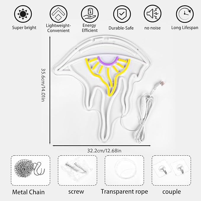 - ART EYE DESIGN: Fercnove Evil eye neon sign features a unique melting eye design. The melt eye creates a dynamic and captivating look, whether for home decor or party settings. It's an beautiful piece of eye decor and also functions as neon signs for wall decor.