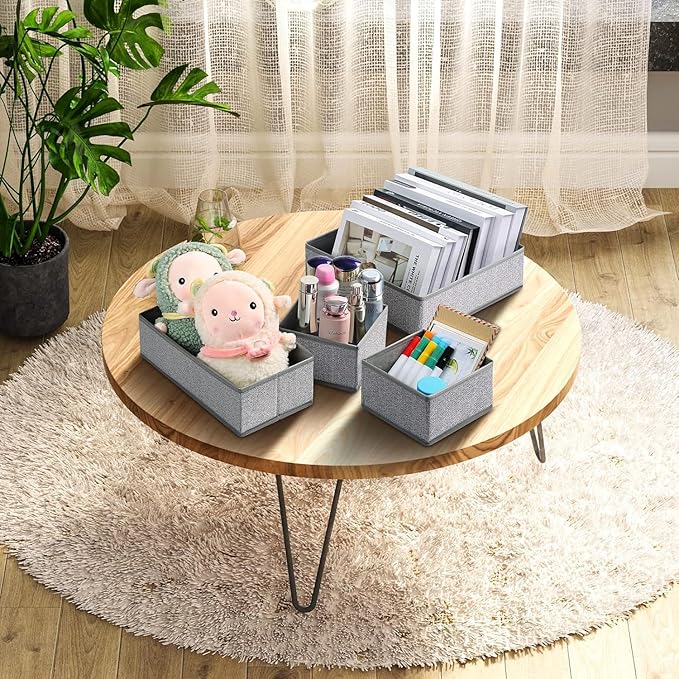 - [12-Piece Value Fabric Drawer Organizer Set]: DIMJ 12-Piece drawer organizer bins provides an abundance of options for your storage needs, making it a highly valuable choice. If our storage box does not meet your expectations, feel free to email us, and we will resolve the issue as quickly as possible