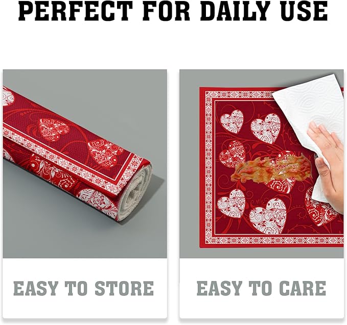 Giwawa Love Heart Placemats Set of 4, Valentines Day Red White Hearts Print Linen Place Mat 12x18 Inch, Romantic Non-Slip Washable Table Mats Kitchen Dining Tabletop Holiday Party Wedding Decor