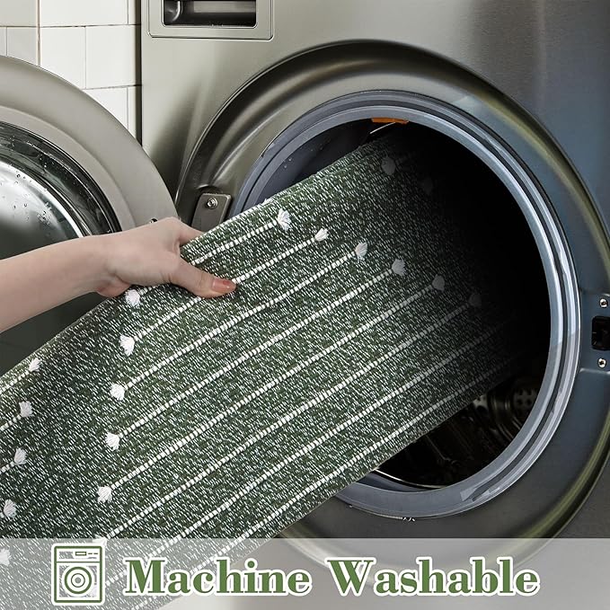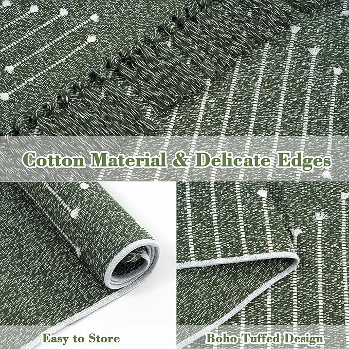 LIVEBOX Boho Green Bathroom Rug 2 x 3, Washable Bath Mat with Tassel Cotton Blend Woven Small Area Rug for for Entryway, Kitchen Sink,Front Door