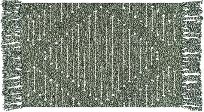 - Dark Green bathroom rugs: Features a geometric design with a striped,the extra knot and tassels add lovely and trendy for the accent mat.Colors may vary slightly due to different lighting and screen settings, but your eyes will love it!