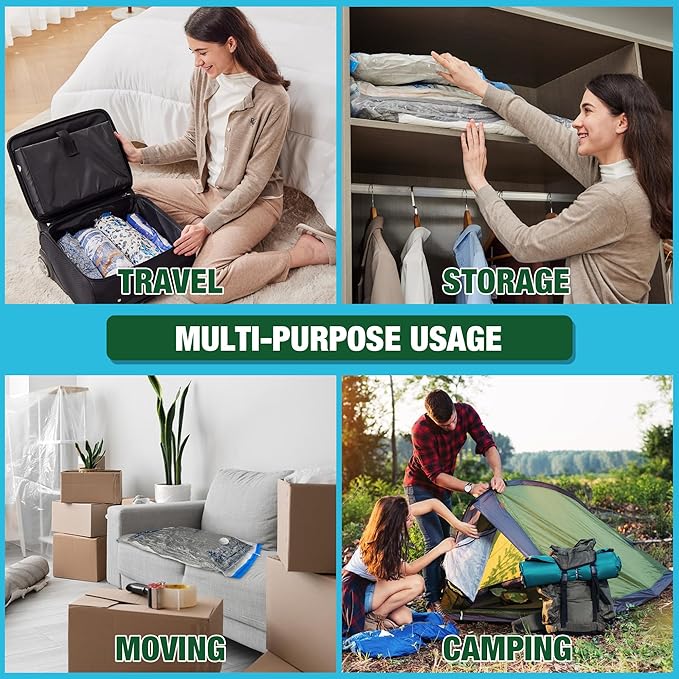 - Vacuum storage bags are a useful tool for home organization, moving, and travel. This set includes 5 jumbo and 5 large bags that can reduce the original volume of items by 80%. They are suitable for storing clothes, bed sheets, blankets, and more.