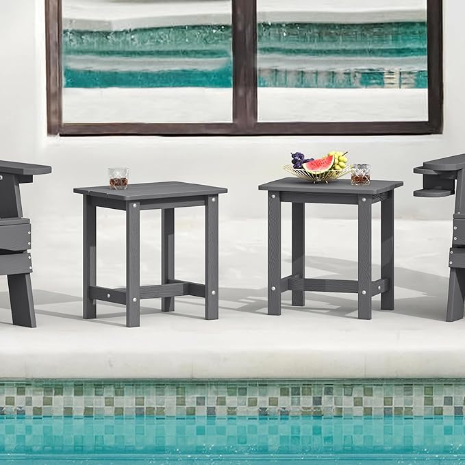 LUE BONA Outdoor Side Table Set of 2, HDPS Small Outdoor Table, Adirondack Side Table, Outside End Table for Patio, Deck, Pool, Weather Resistant/Easy Maintenance/Indoor or Outdoor Use, Dark Gray