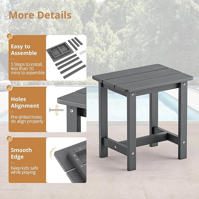 - Weather and Fade Resistant: This HDPS outdoor side table is weather resistant and will not fade or decompose, it looks like natural wood also has durability, performing well in terms of weather resistance, water resistance, fade resistance
