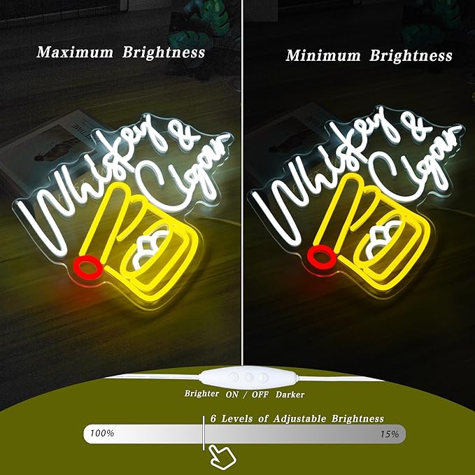 - The Ultimate Gift for Enthusiasts: Looking for a unique and memorable gift for the whiskey lover, cigar aficionado, or bar owner in your life? This 'Cigar & Whiskey' neon sign is the perfect present. Ideal for birthdays,anniversaries, or as a housewarming present, it's a gift that keeps on giving, adding charm and character to their space every day.