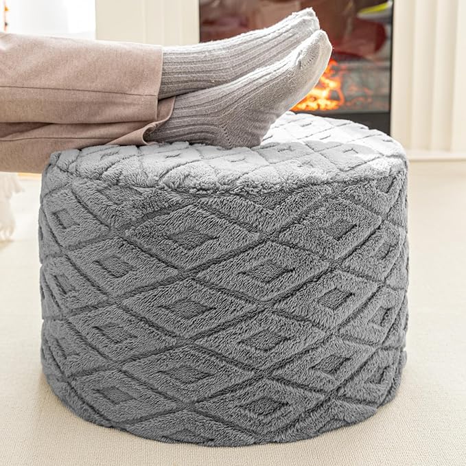 - 【Premium Comfort with Good Support】This pouf ottoman is filled with high-density foam, providing the perfect blend of comfort and good support. The solid all-in-one foam ensures the ottoman retains its shape while offering a plush, comfortable pouf cover for resting your feet or sitting. Additionally, the cover features a non-slip bottom, ensuring the ottoman stays securely in place during use.