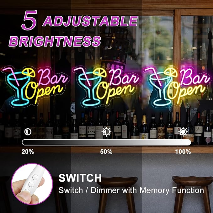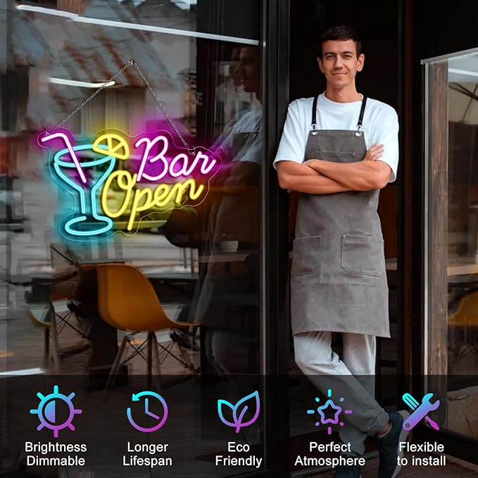 - Nice Decorative Open Sign: Brighten up your store with this high-visibility Bar Neon Sign, drawing the eyes of passers-by and bringing in more potential customers