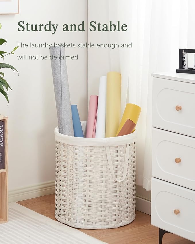 - Stylish and Rounded: The woven laundry basket is handwoven from durable synthetic rattan material. round laundry basket has no sharp or pointed edges. Ideal for use as a bathroom hamper or laundry room wicker hamper blanket basket living room
