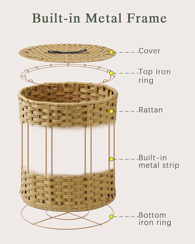 - Easy to install: This woven laundry hamper with lid is quick to assemble and we provide the instructions and tools needed for assembly. The round storage basket with lid can also be folded to convenient daily storage of rattan hamper with lid