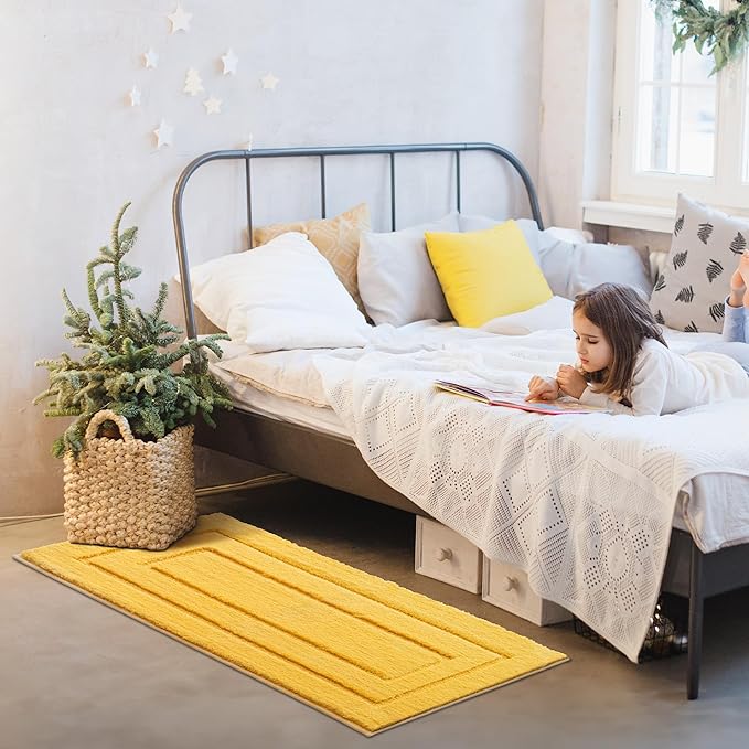 GRANNY SAYS Bathroom Rug Mat, 48" x 24" Non-Slip, Super Soft and Water Absorbent, Microfiber Bath Rug, Machine Washable, Large Bathroom Rug for Floor, Yellow
