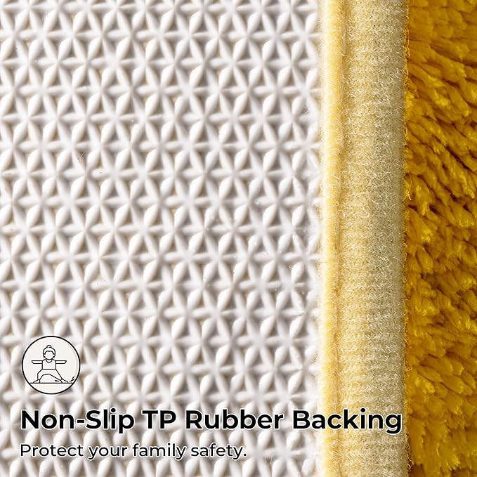 - Non-Slip TPR Backing - The bath mat is made with a premium, skid-resistant thermoplastic rubber backing for added security and durability. Keep the bottom of the bath rug dry, as water under the bath rug can make it slip.