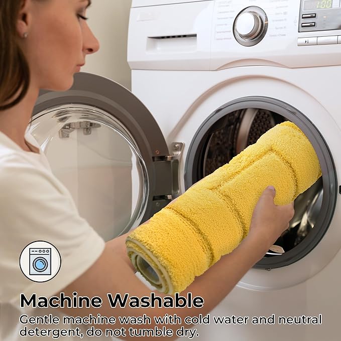 - Machine Washable - Machine wash the bathroom floor mat with cold water and mild detergent. Make sure the dryer is on low heat setting when tumble dry and keep away from chlorine and bleach. After professional testing, the color will remain vibrant after many washes.