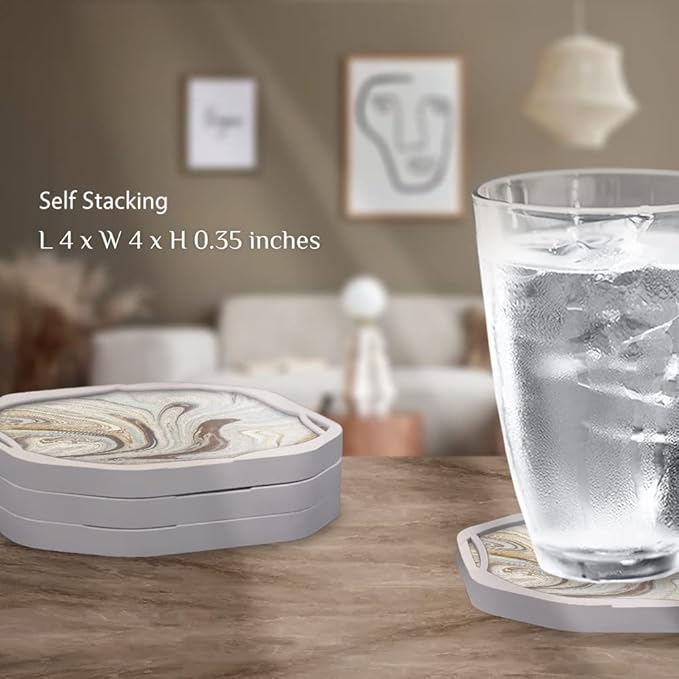 - EXTRA ABSORBENT - The aesthetic and cool coaters are absorbant enough for cold drinks like iced water; The anti sweat coaters are suitable for beverages like beer, wine, whiskey, tropical cocktail, fruit juice, coke, tea or hot chocolate; Accommodate big drinkware like large tumblers, mugs, mason jars, or glassware like beer stein, bourbon glasses, cola bottles and pitcher jugs; Stackable for compact storage; Easy to clean and maintain
