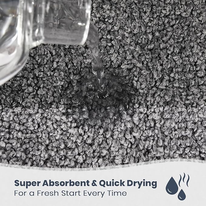 - SUPERIOR ABSORBENCY FOR A DRY BATHROOM: Our bath rug quickly absorbs moisture, keeping your bathroom dry and clean. Whether you’re stepping out of the shower or bath, the rug helps prevent water from pooling on the floor, maintaining a neat and dry environment.
