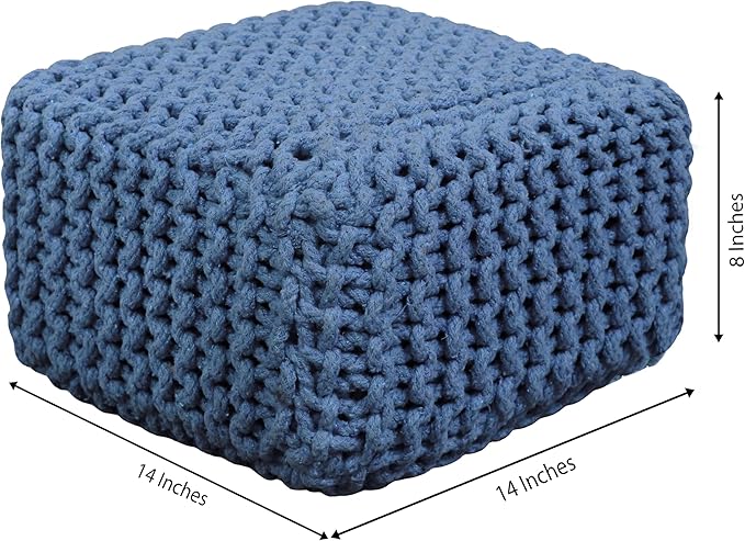 - Design: Hand-knitted with durable cotton cord in a stylish braided design, this 14" length x 14"width x 8" height cube by COTTON CRAFT is the perfect footstool for small spaces. Weighing approximately 3.9 Lbs., it is lightweight and easy to move.