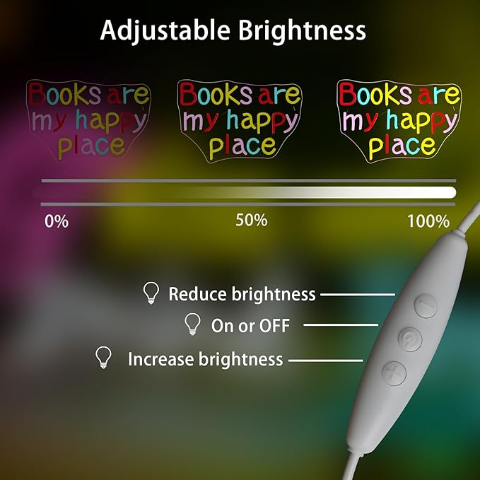 - Books Are My Happy Place:Colourful neon read books sign, placed in the classroom, stimulate student interest in learning, and neon learning signs can serve as a reminder for everyone to read and to be friendly.