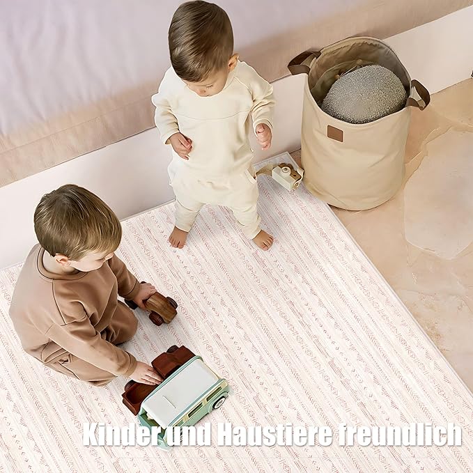 - Non Slip Pink Rug: This boho pink area rug with snowflake-shaped TPE non-slip rubber backing can effectively keep it in a stable position, preventing dangerous movement and slipping. Safe and durable, this big pink area rug is safer for your kids or pets to rest and play around.