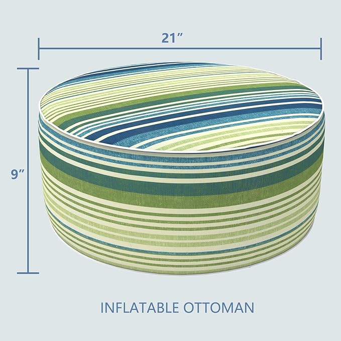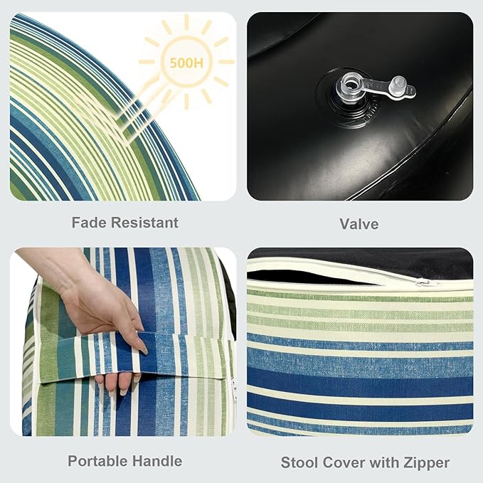 LVTXIII Inflatable Stool Ottoman Footrest with Handle, Decorative Fade-Resistant Foot Stool, Indoor or Outdoor Pouf for Home Garden and Camping Use, D21 x W 21 x H9, Stripe Blue Green