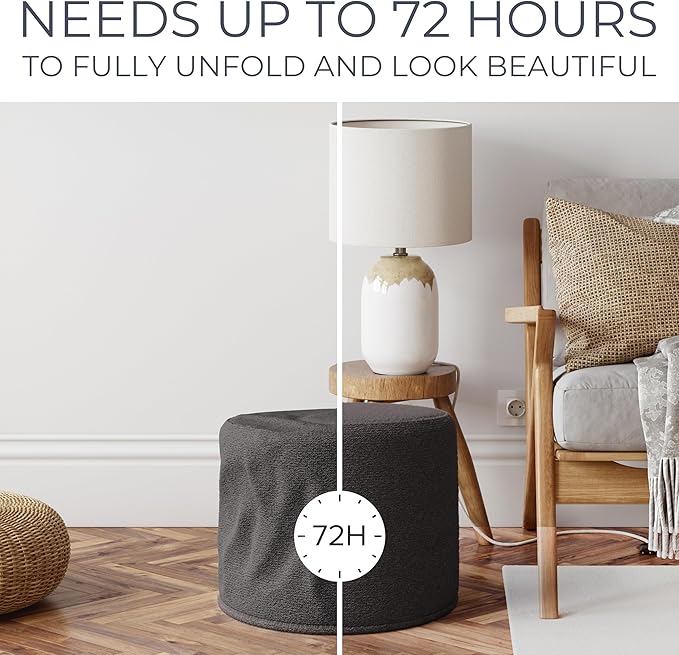 - Let It Fully Unfold & Enjoy Long-Lasting Comfort: Vacuum-packed for efficiency, please allow the ottoman pouf up to 72 hours to fully expand. Achieve optimal foam hardness within 7 days for enduring support and experience a new level of well-being